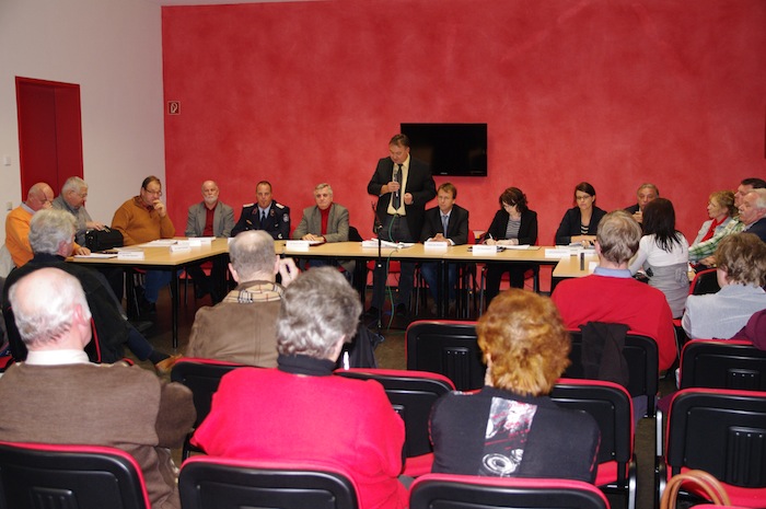 Zu Beginn der Veranstaltung stellte Bernd Köppen die anwesenden Ortsbürgermeister die Pietzpuhler Bürgermeisterin, den Gemeindewehrleiter, den Vorsitzenden des Gemeinderates sowie Mitarbeiterinnen und Mitarbeiter aus der Verwaltung vor. Sie hatten sich um die Fragen gekümmert, die im Vorfeld der Veranstaltung bei der Verwaltung eingereicht worden waren.