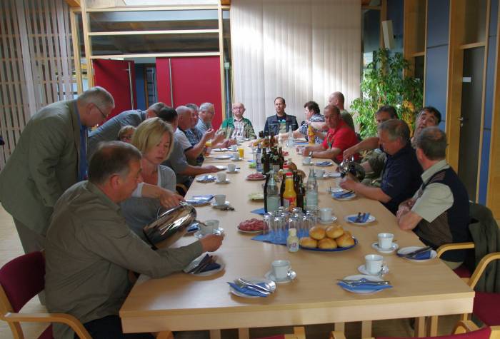 Und dann konnte es auch endlich mit dem Frühstücklosgehen... Und alle erhoben (nicht nur in Gedanken) ihr Glas auf den beliebten Ex-Baubetriebshofleiter...
