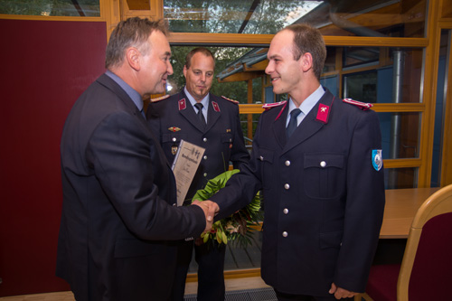 Jens Rexin von der Ortsfeuerwehr Lostau wurden einstimmig vom Gemeinderat zum Gruppenführer berufen. Es gratulieren der Ortsbürgermeister Thomas Voigt, der Gemeinderatsvorsitzende Herman Lünsmann, der Gemeindewehrleiter Dirk Jeitner. Gemeindebürgermeister Bernd Köppen überreicht Jens Rexin die Berufungsurkunde. Rexin war von der Feuerwehr Biederitz in die Feuerwehr Lostau gewechselt und brachte die Ausbildung zum Gruppenführer bereits mit.
